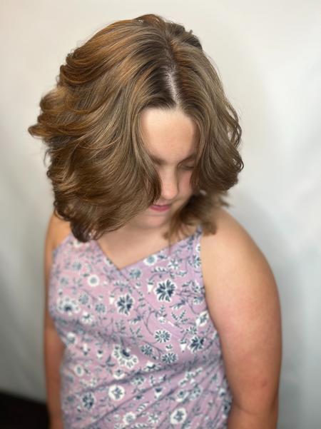 Enhance your natural beauty with strategically placed highlights and a personalized haircut tailored to your unique style.
